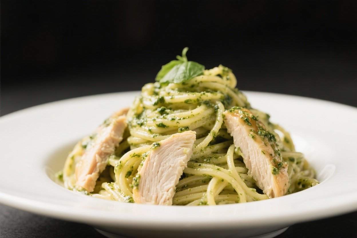 Creamy Pesto Chicken Spaghetti – Cozy, Saucy, and Weeknight-Friendly