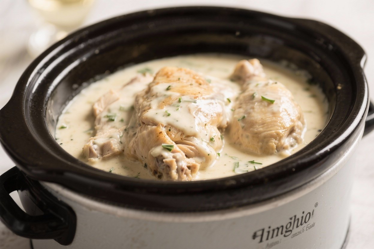Crockpot Chicken in a Rich White Wine Cream Sauce – Comforting, Velvety, and Effortless