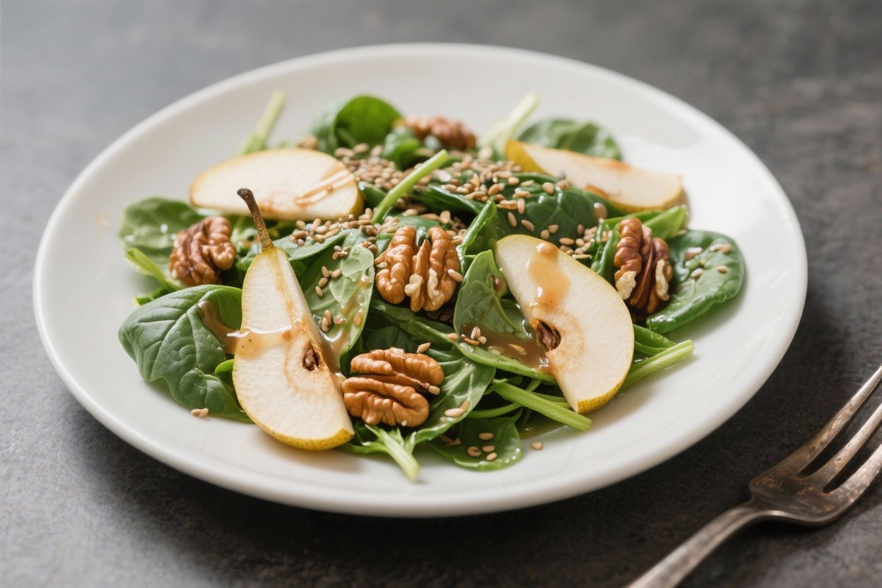 Pear and Walnut Spinach Salad with Flaxseed Dressing: The Crisp, Crunch, and Glow-Up Bowl You’ll Actually Crave