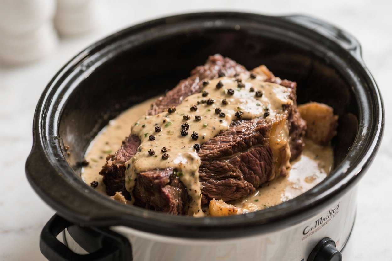 Slow Cooker Beef Roast With Creamy Peppercorn Sauce – Comforting, Tender, and Foolproof