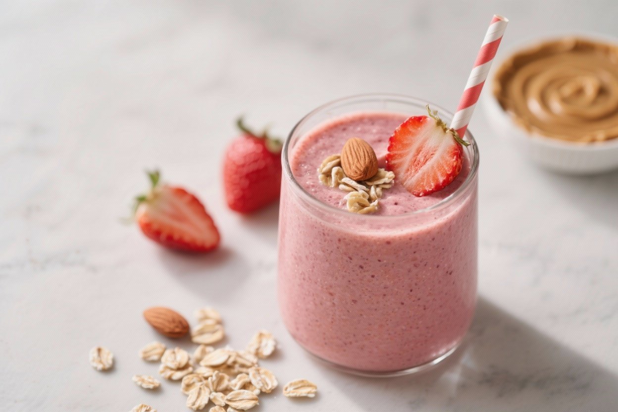 Strawberry Oat Smoothie With Almond Butter (Healthy & Meal-Worthy) – Creamy, Filling, and Naturally Sweet