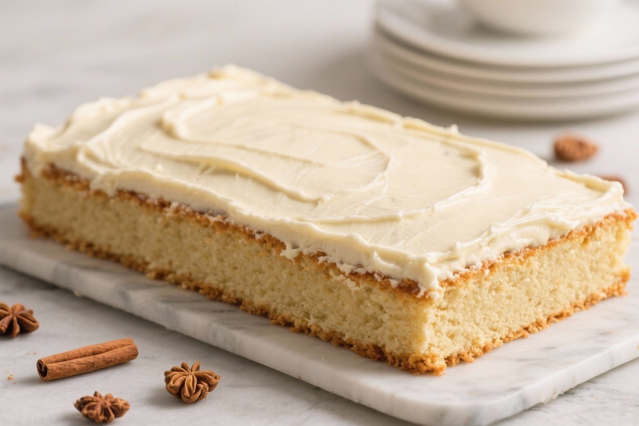 This Eggnog Sheet Cake with Nutmeg Frosting Is the Holiday Flex Your Dessert Table Needs